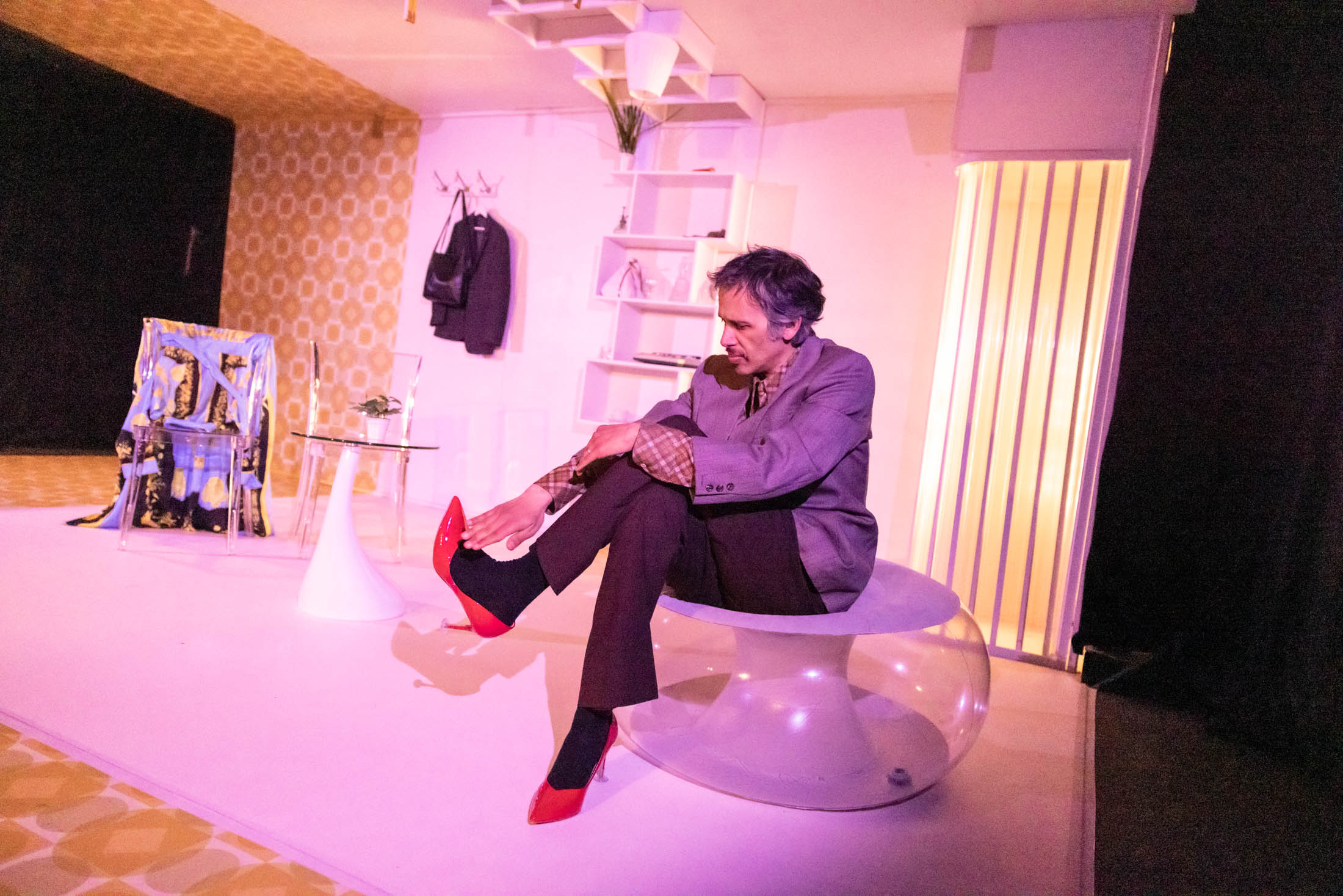 In einem Moment im Theaterstück wird sich Lucienne bewusst, dass der Detektiv ihr eigentlich in die Quere kommt. Sie tötet ihn jedoch nicht einfach, sondern erkennt, dass Fabère sich auf einem gewagten Weg der Selbstfindung und kritischen Introspektion befindet. Er ist nicht mehr ganz am Weglaufen, aber auch nicht ganz am Entgegenlaufen. Er tastet sich langsam aber sicher daran, was Genderidentitäten eigentlich sind und wie fluide diese sein können. Es ist auch in diesem Sinne, dass Fabère weiter gehen muss. Weg vom Patriarchat und in Trauer. Zeitgleich läuft er der Authentizität entgegen und lernt, sich selbst wie auch seine Tochter, etwas besser kennen. Auch dies passiert in Trauer. Denn es schmerzt immer, die alten Schuhe auszuziehen und sich neue anzueignen. Ja, es ist immer schwierig, das alte Ich zurückzulassen, und ein neues Ich anzunehmen.