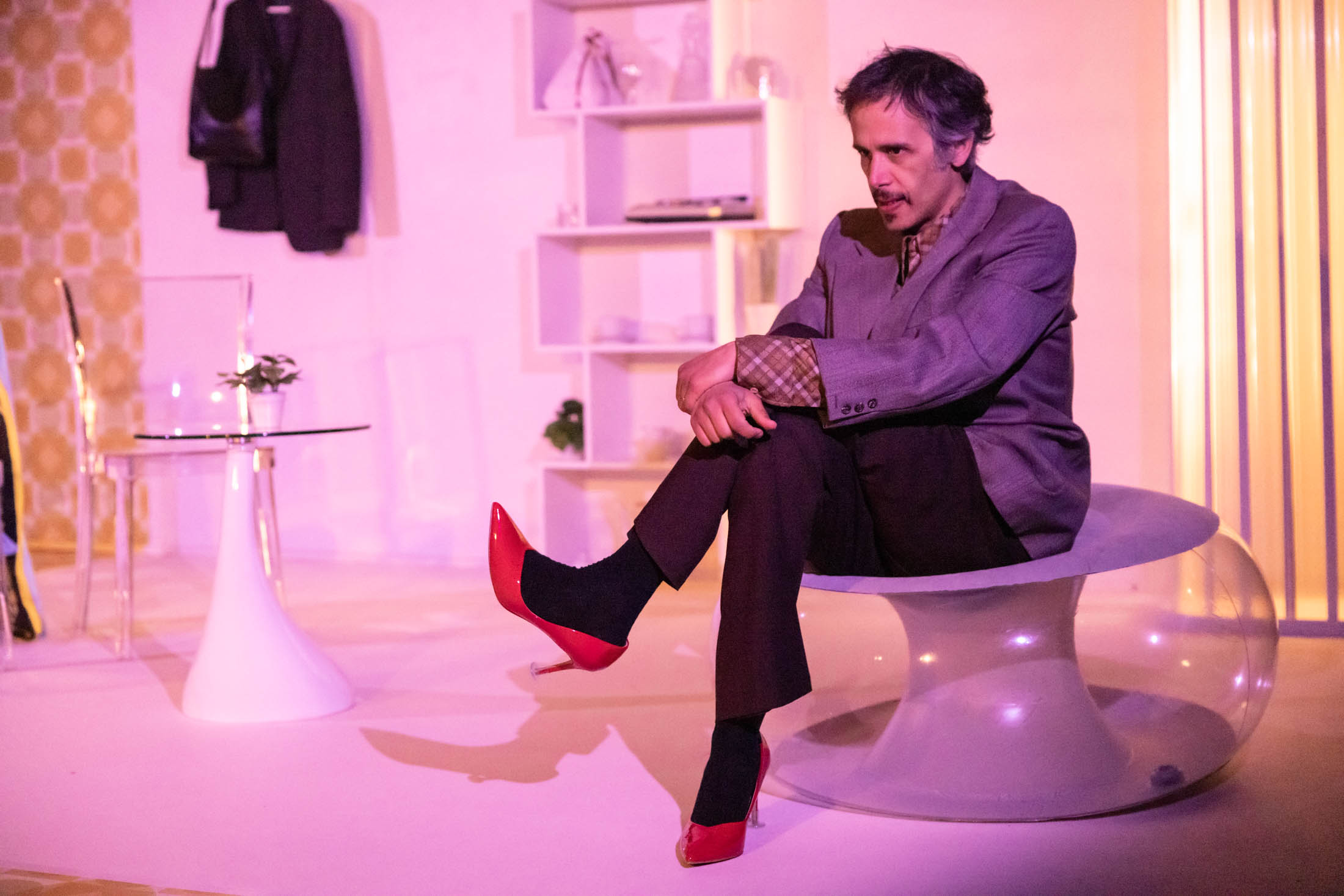 Er fängt jedoch nicht an, sich wie sie zu fühlen. Fabère ist immerhin nicht transgender. Allerdings bemerkt er, wie anstrengend es ist, in diesen Schuhen zu gehen. Auf einer praktischen Ebene, aber auch beispielsweise an Luciennes Reaktion auf seinen Auftritt. Ihre Tür war offen, er hat sich eines ihrer Kleider genommen und tanzt, in den Stöckelschuhen, mit dem Kleid als Tanzpartner. In dieser Szene bemerkt man Fabères Wunsch nach etwas Anderem, etwas weniger